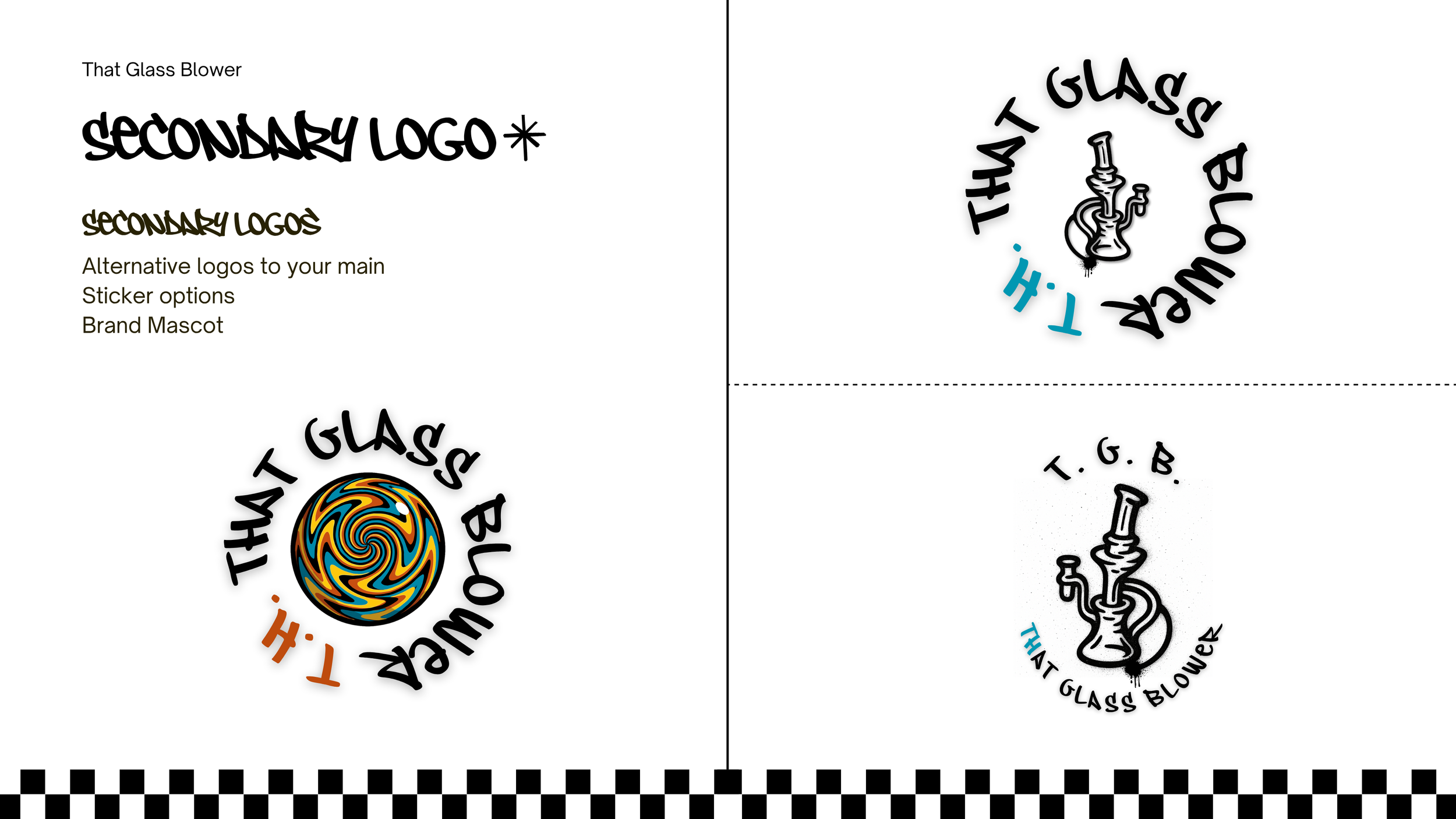 That Glass Blower—brand identity that centers around expressive craftsmanship, playful rebellion, and technical artistry—designed to resonate with a bold, curious, and culturally attuned audience. This custom brand kit features visual elements that speak to both functionality and flair:
